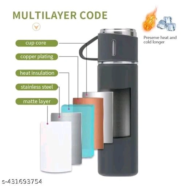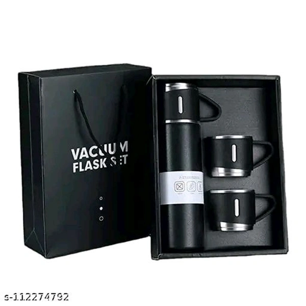 ThermoLux™ Vacuum Flask Gift Set – 500ml Double Wall Stainless Steel Bottle with 2 Insulated Cups | Premium Travel & Office Set (₹279)
